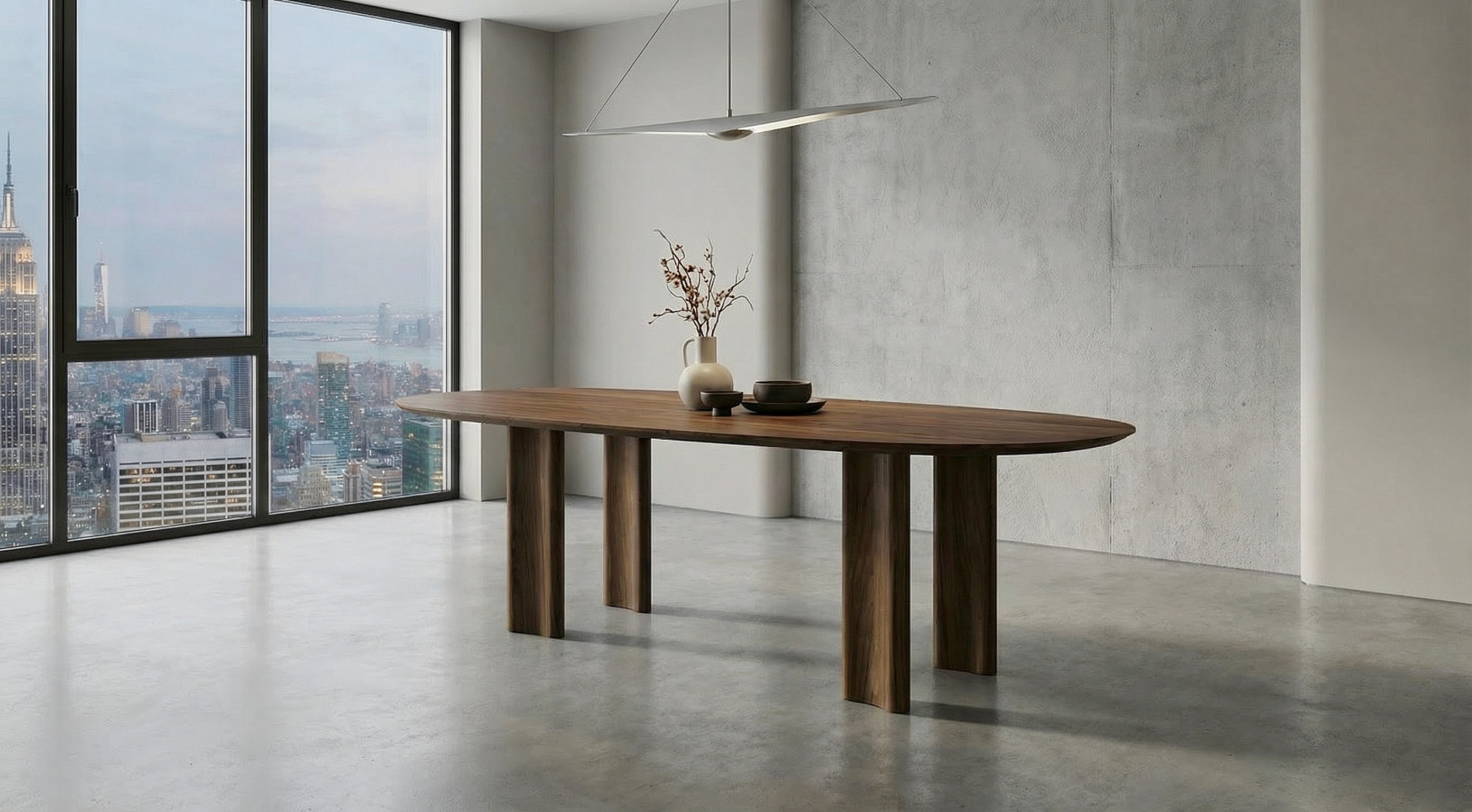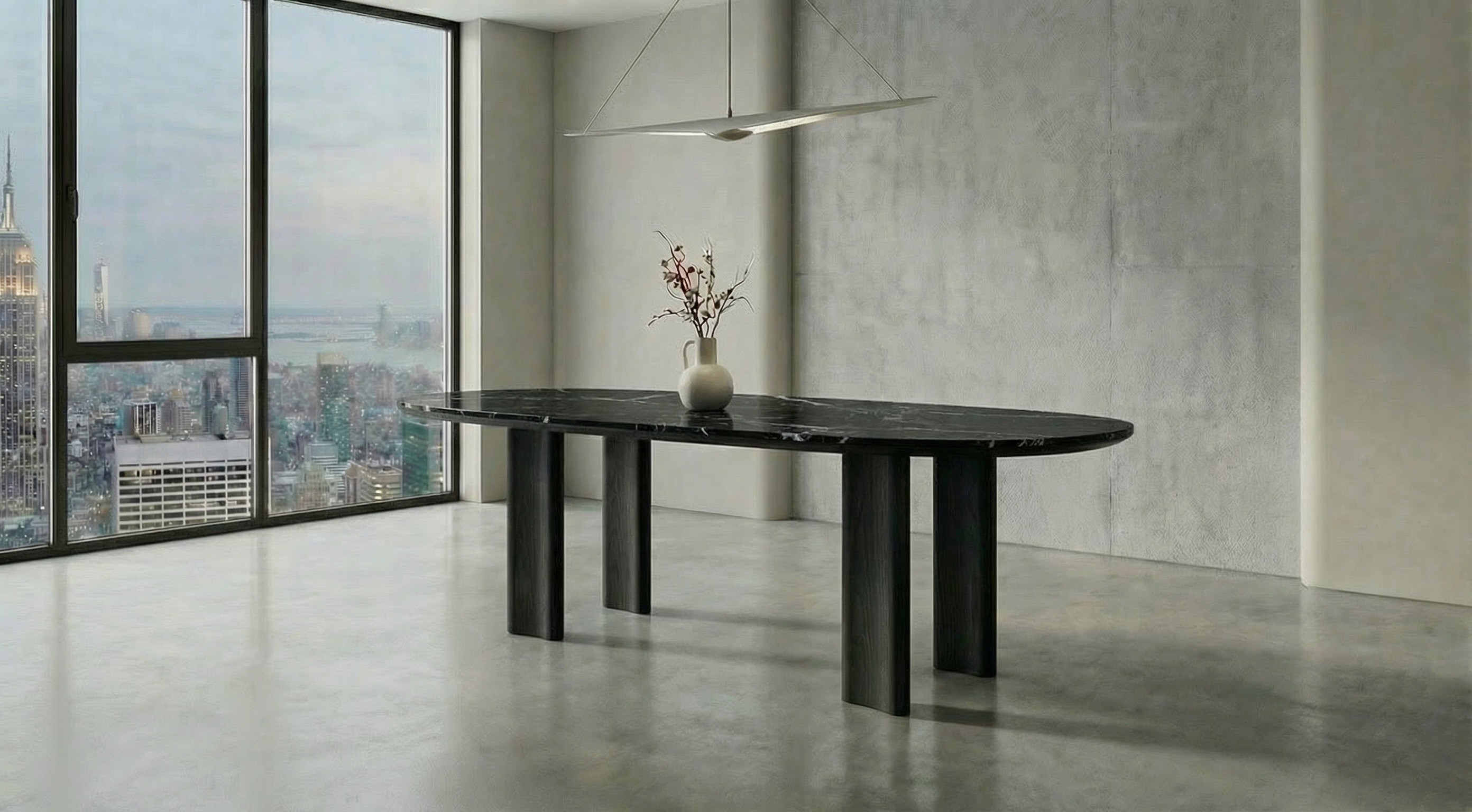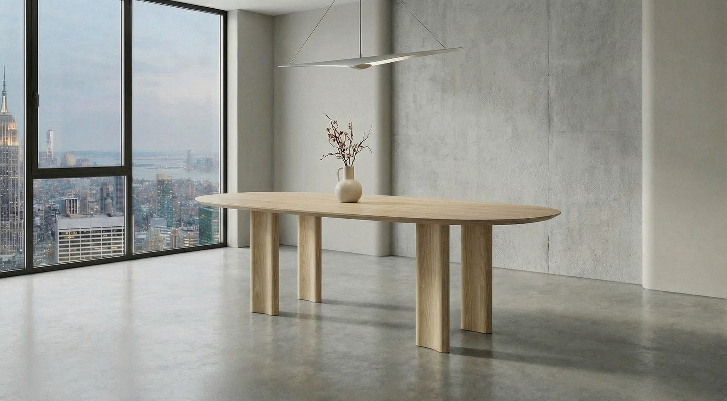 Boreas is defined by clarity and choice. The top reads as one continuous plane, while the base stays understated. Choose the leg profile (Uoma or Oval) to shift the character from more architectural to more softened, without changing the calm.