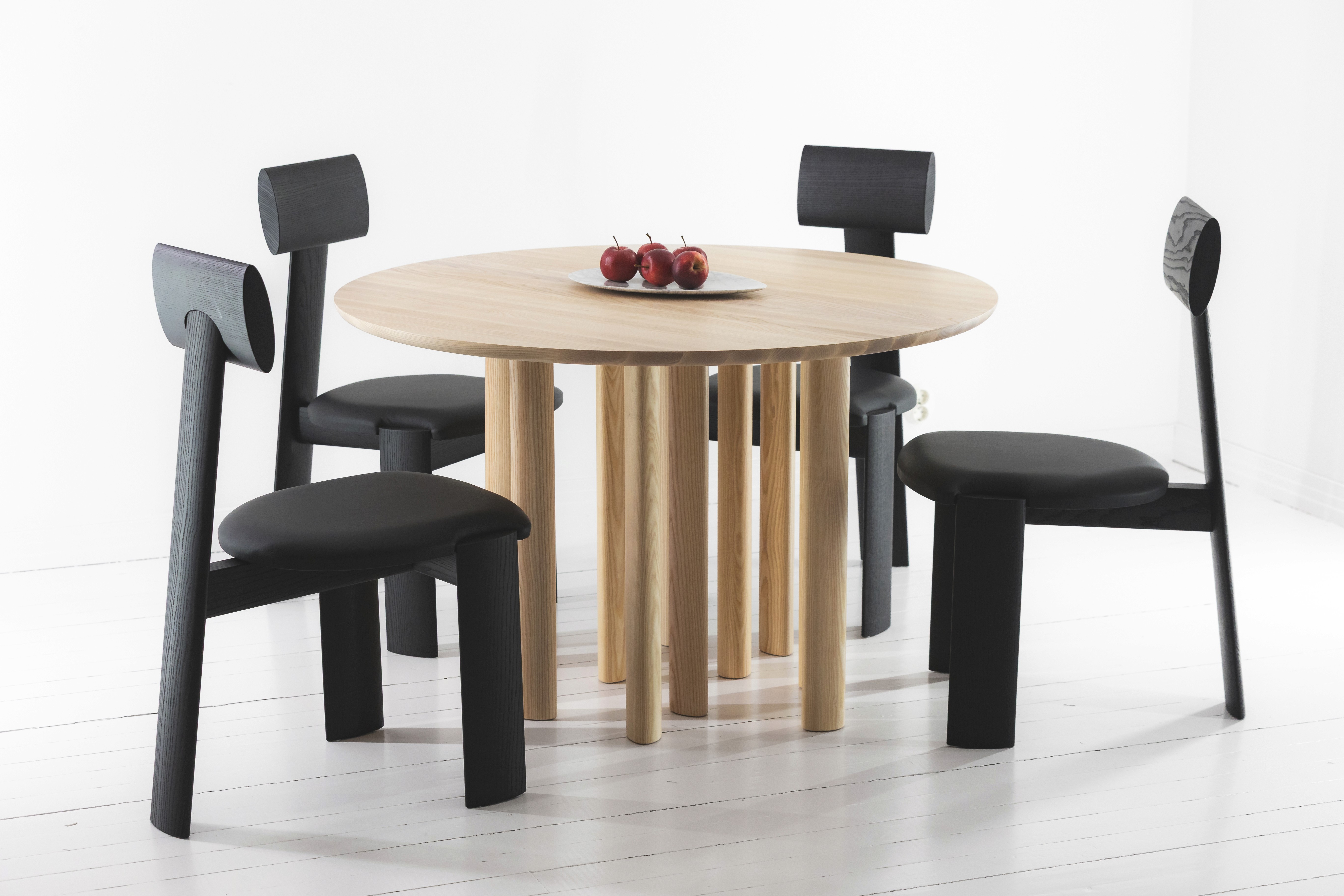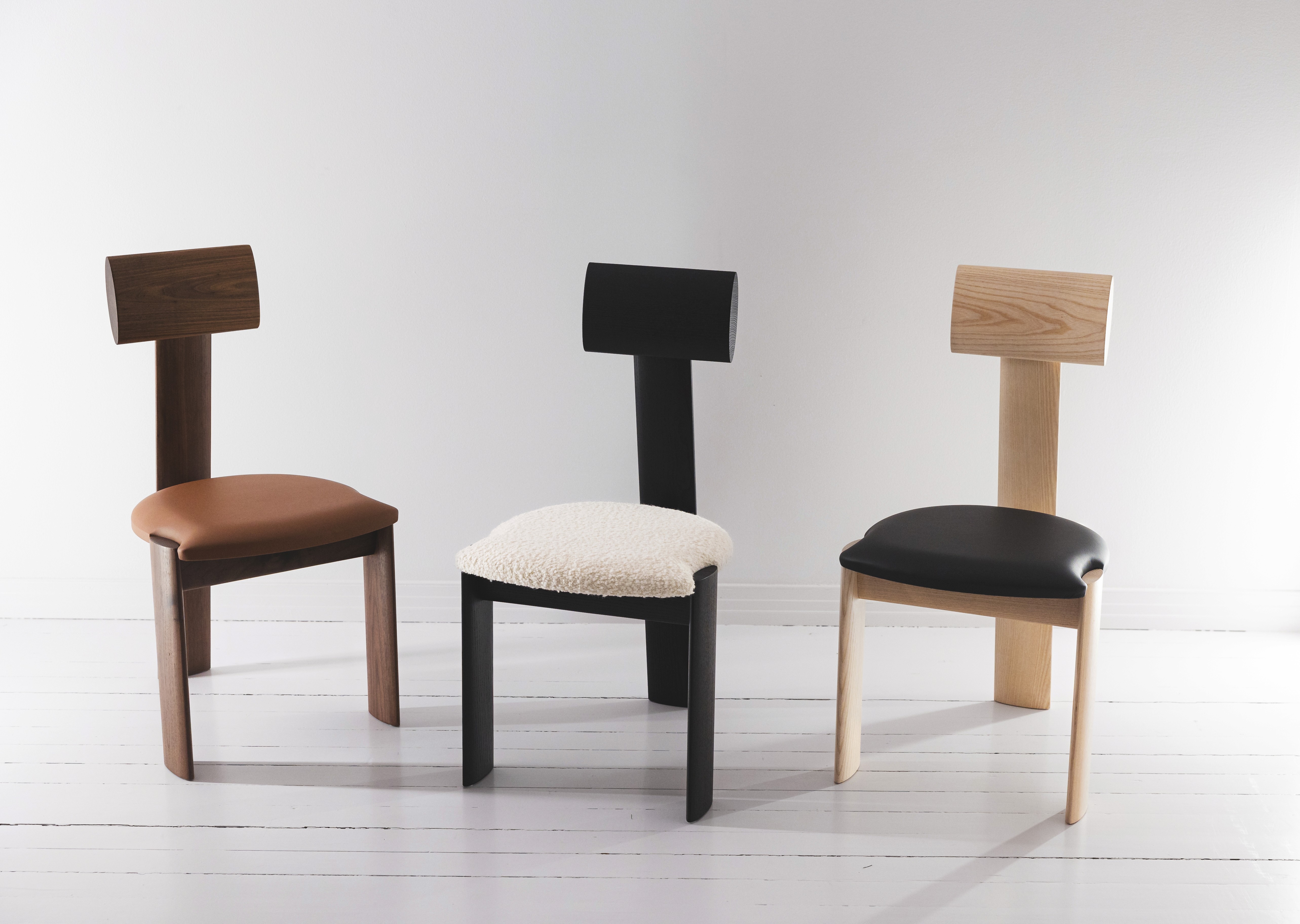 Mantis is a three-leg dining chair designed as organic architecture: calm, reduced, and quietly structural. Two front legs set a stable stance; the rear leg becomes a single “spine” that carries the seat and rises into the backrest. The result is light in footprint but confident in presence—Nordic restraint with human modernism, expressed through a few clear parts and careful proportions.