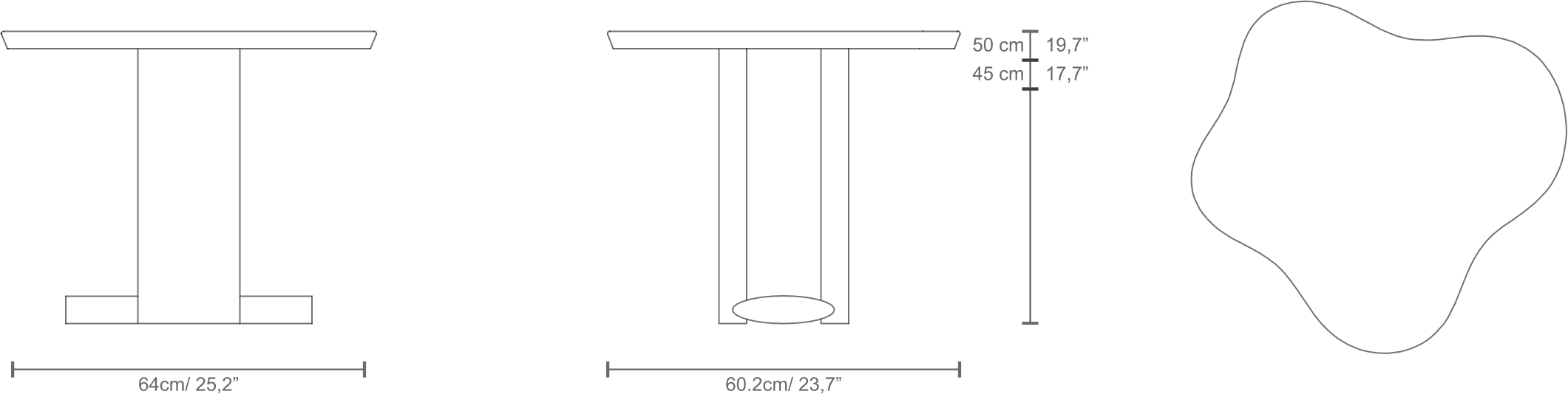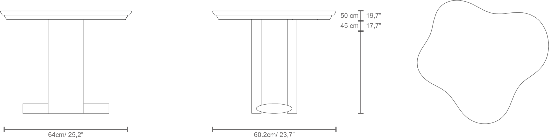 Table top size: 640 x 600mm Two alternative heights: 450mm and 500mm