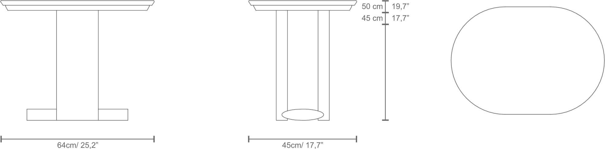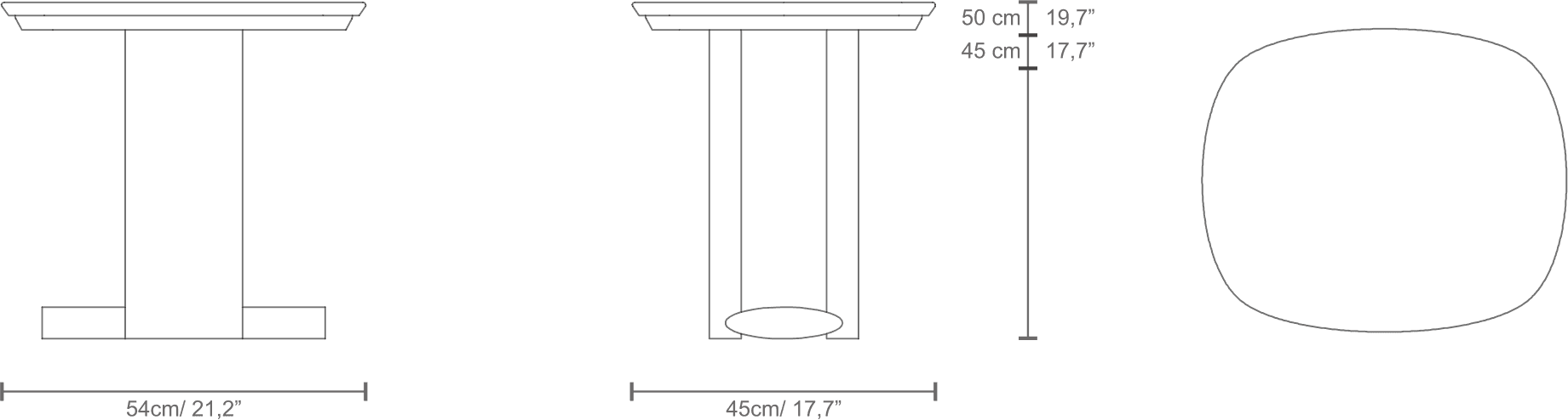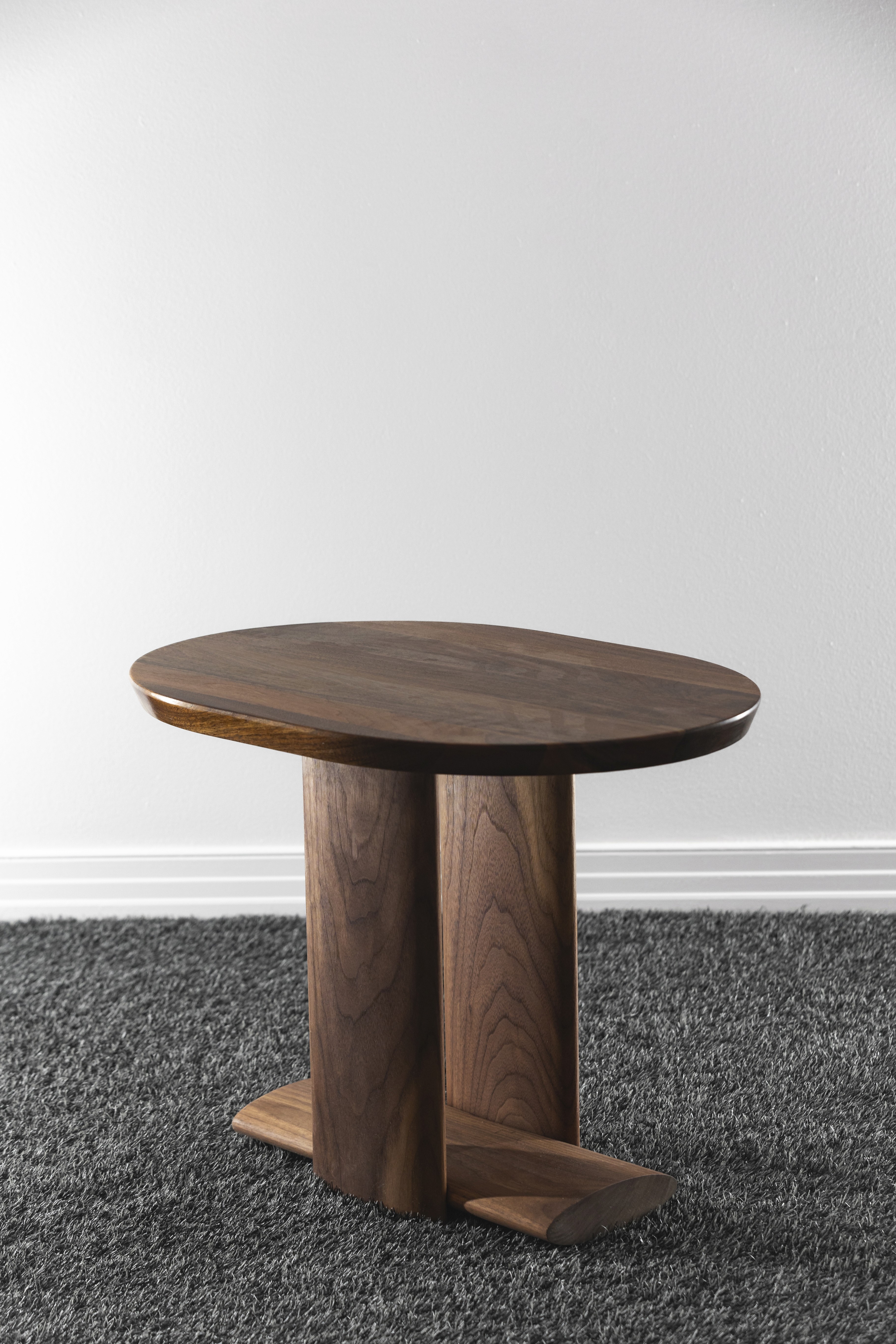 Ridge is a small pedestal table with two alternative top shapes. It is designed for the edge of daily life: the place next to a sofa arm, a lounge chair, or a bed where a surface needs to sit close without taking over the room. The outline is symmetric and calm—Nordic restraint with human modernism.
