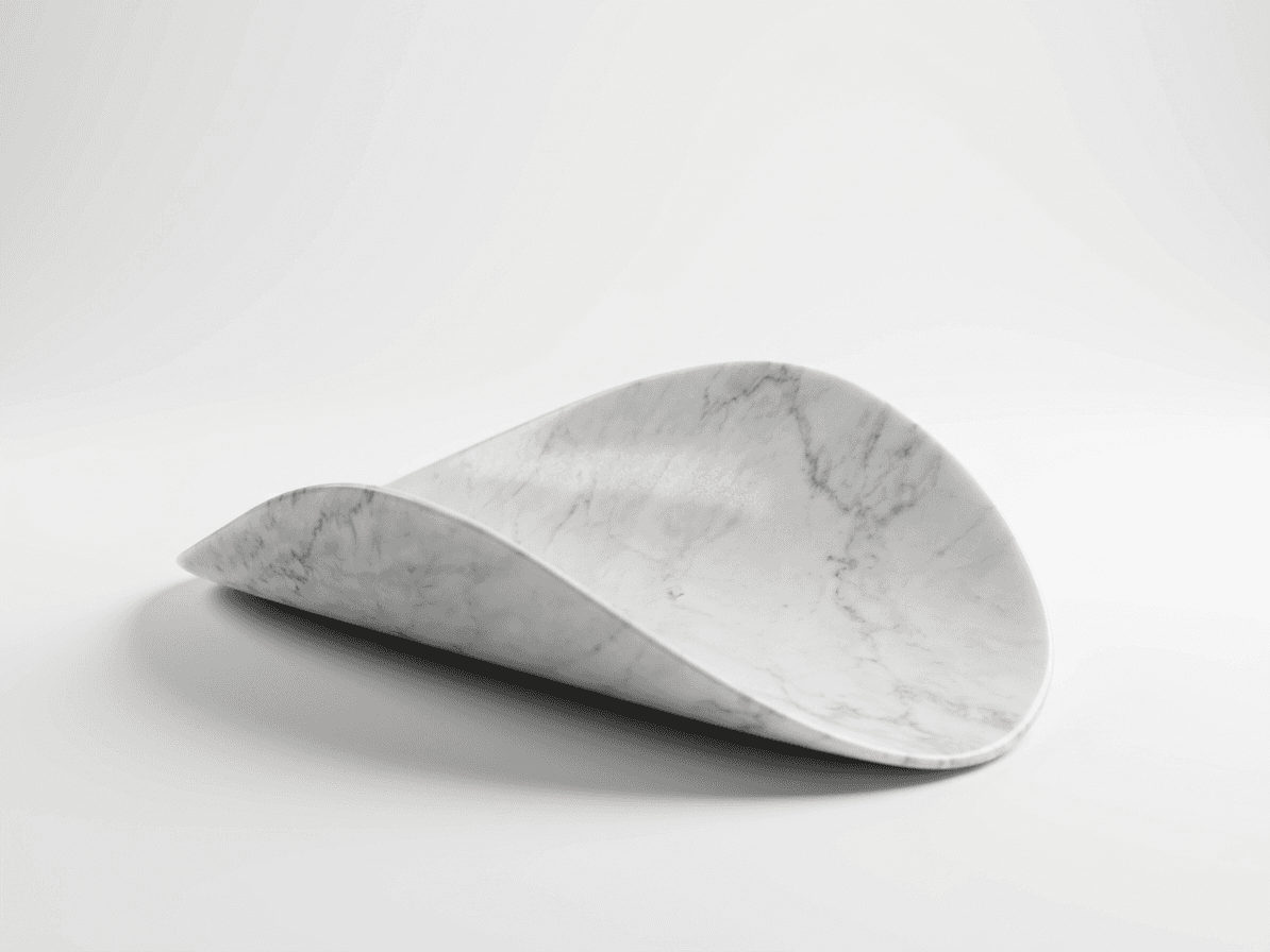 Crafted from plywood with ash or walnut veneer for warm and tactile piece, or from Nero marquina, Statuarietto or Arabescato marblemarble for a cooler, sculptural presence.