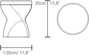 Made entirely in marble, Vortex carries architectural weight in a compact footprint. The form is stable, but visually light: the twist creates shadow and depth, so the piece reads differently from every angle. It works as a stool, a small side table, or a sculptural accent—quietly present, never decorative.