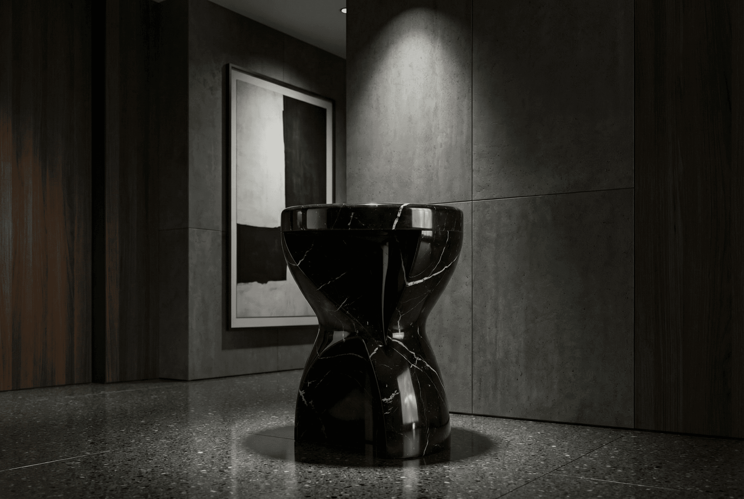 Vortex is offered in Nero Marquina, Arabescato or Statuarietto marble. Each piece is naturally unique, defined by veining and mineral variation. It is intended to age with dignity and to earn its place through material integrity and proportion, not trend.